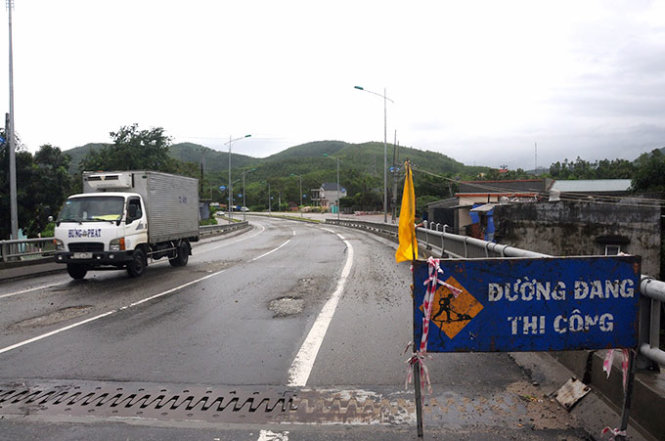 Ghi nhận ngày 3-12, tại khu vực phía nam cầu có một số xe lu và công nhân rải đá cấp phối để “vá” lại ổ gà. Trong khi đó, ở phía bắc cầu, nhà thầu đã đặt biển báo “công trình đang thi công” để xe cộ chủ động giảm tốc độ.
