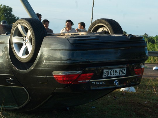 Chiếc xe gây tay nạn bị lật ngửa tại hiện trượng