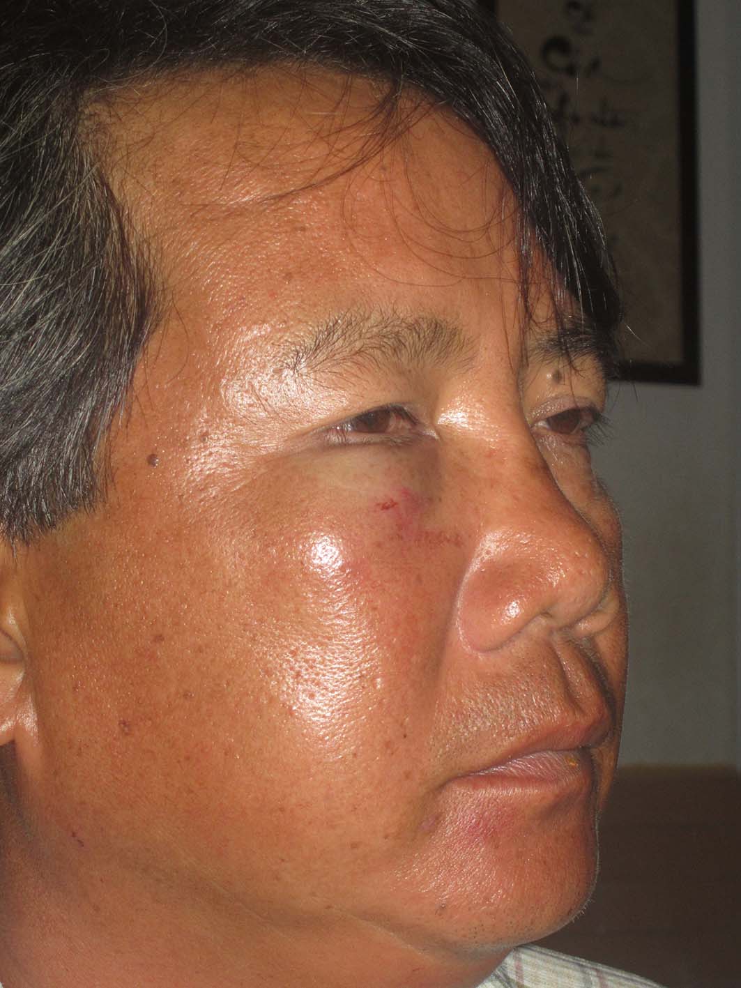 Ông Mười với vết thương ở vùng mặt.