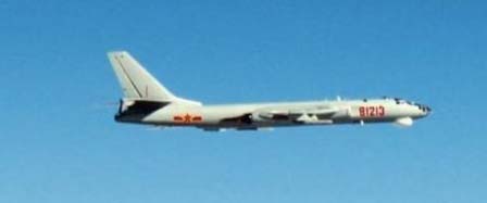 Một chiếc H-6 của Trung Quốc bay gần quần đảo Okinawa của Nhật Bản vào hôm 06-12 vừa qua. Ảnh: Lực lượng phòng vệ trên không Nhật Bản.