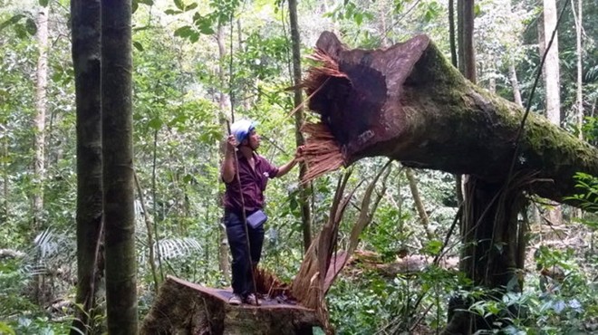Nhiều cây dổi tại Vườn quốc gia Chư Yang Sin (Krông Bông, Đắk Lắk) bị đốn hạ.