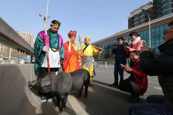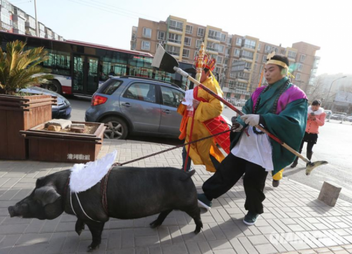 Trong trang phục tạo hình của Tôn Ngộ Không, Sa Tăng và Đường Tam Tạng, ba người nông dân Trung Quốc sống tại thành phố Lữ Lương, tỉnh Sơn Tây, phía Bắc nước này đã dắt theo một chú lợn đen thản nhiên đi lại trên một vài con phố ở thủ đô Bắc Kinh như thể thầy trò Đường Tăng đang khăn gói lên đường thỉnh kinh. Tuy nhiên, được biết, đây là một chiêu trò quảng cáo sáng tạo của ba nông dân Sơn Tây nói trên.Thay vì tìm thêm một người đàn ông nữa thì 3 người nông dân này đã chọn ngay một chú lợn cho đóng vai Trư Bát Giới. Họ cho biết, ý tưởng hóa trang thành các nhân vật trong danh tác kinh điển “Tây du ký” sẽ khiến người dân chú ý hơn tới họ mà để mắt tới những nông sản họ mang lên thành phố buôn bán.