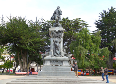 Tượng nhà hàng hải Ferdinand Magellan ngay giữa Main Square tại Punta Arenas. (Hình: ATNT Tours & Travel)