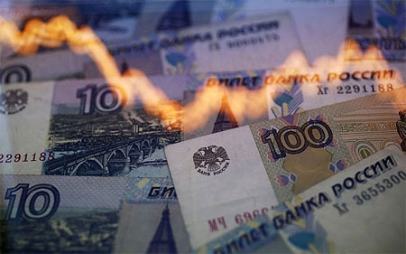 "Lần đầu tiên trong lịch sử giá đồng Rúp của Nga tụt xuống mức 1 USD đổi được 64 Rúp, giảm 49% so với đồng USD từ đầu năm 2014 đến nay.