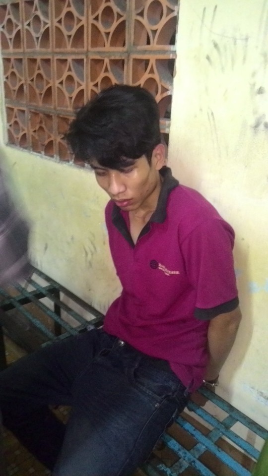 Đối tượng Lương Ngọc Quế bị còng tại Công an phường 13, quận Tân Bình – TP HCM.