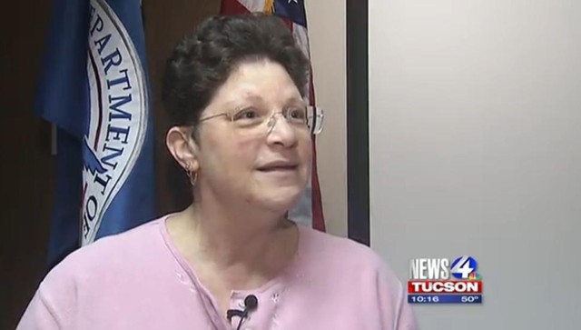 Các nhân viên bộ phận xử lý hành lý thất lạc tại phi trường Tucson cho biết họ không thể hiểu tại sao hành lý của bà Dellos “đi bụi” lâu đến thế.