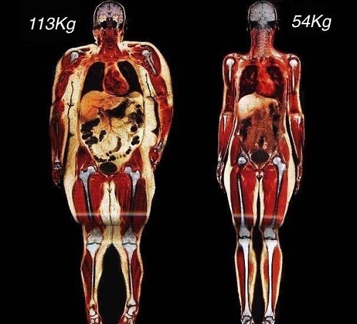 Đây là một bức ảnh cộng hưởng MRI của 2 người phụ nữ, 1 người 113kg và một người 54kg. Thời gian chụp là 5 tiếng. Hình ảnh sau đã nêu lên sự nguy hiểm của bệnh béo phì.