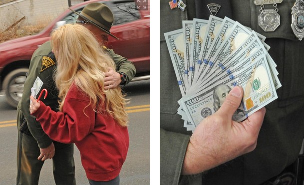 Một cảnh sát bang West Virginia cho Daily Telegraph hay số tiền mà cảnh sát phát cho các tài xế nằm trong dự án ông già Noel do một nhà tài trợ bí mật cung cấp tiền. Nhà tài trợ tuy không giàu nhưng muốn mang chút tiền tài trợ cho cộng đồng và mang niềm vui đến cho mọi người.