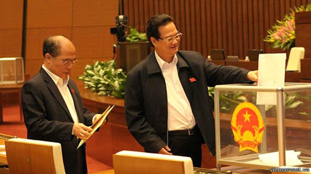 Hôm thứ Năm, trang tin của Quốc hội Việt Nam cho hay ông Nguyễn Sinh Hùng, Chủ tịch Quốc hội, ủy viên bộ chính trị, chủ trì cuộc lấy phiếu với trên năm chục quan chức lãnh đạo là đảng viên trong Quốc hội.