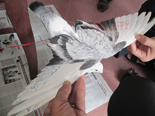 Ký tự lạ dưới cánh chim bồ câu được người dân phát hiện ở TP Đà Nẵng Ảnh: Bích Vân