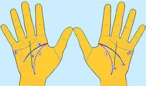 + Đường tâm đạo cong cho biết bạn là người sáng tạo và tức thời.