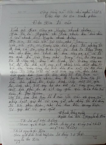 Đơn tố cáo của gia đình anh Hậu với việc làm dụng sử dụng dụng cụ hỗ trợ của ông Nguyễn Bá Hạnh - Trưởng công an xã Thanh Đồng