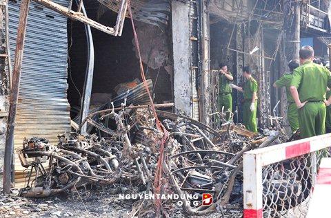 Đến trưa nay công an đang khám nghiệm hiện trường điều tra nguyên nhân và thống kê thiệt hại từ vụ cháy