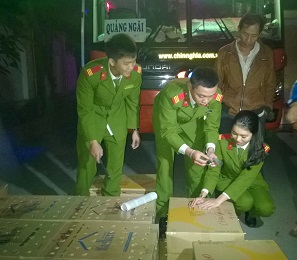 Quá trình làm việc với cơ quan chức năng, chủ xe Phạm Ngọc Huy (SN 1985, trú TP Quảng Ngãi) và tài xế Bùi Xuân Linh (SN 1969, trú huyện Bình Sơn, Quảng Ngãi) không xuất trình được giấy tờ chứng minh nguồn gốc số hàng nói trên. Công an Tp Vinh đã lập biên bản thu giữ và hoàn tất hồ sơ bàn giao số hàng hóa trên cho Hạt Kiểm lâm và Chi cục Thú y Tp Vinh xử lý.
