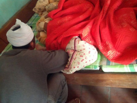 Anh Nguyễn Văn Lý (chồng chị H.), đang chăm sóc cho con.