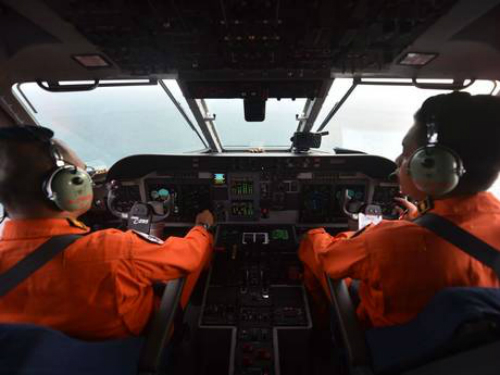 | Các nhân viên đội tìm kiếm và cứu hộ lái máy bay đi tìm những mảnh vỡ và thi thể nạn nhân |