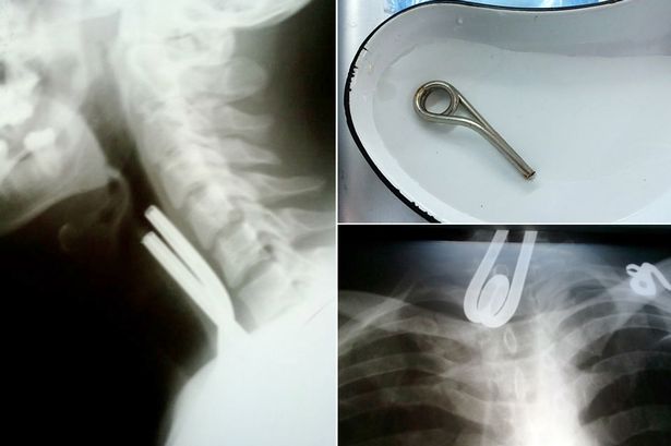 Các bác sĩ cho biết, họ đã nghĩ nhiều phương pháp để loại bỏ dị vật, nhưng cuối cùng đã quyết định mổ gắp dị vật ra khỏi cuống họng - phương pháp rất mạo hiểm vì thanh sắt có thể làm tổn thương nghiêm trọng thực quản.