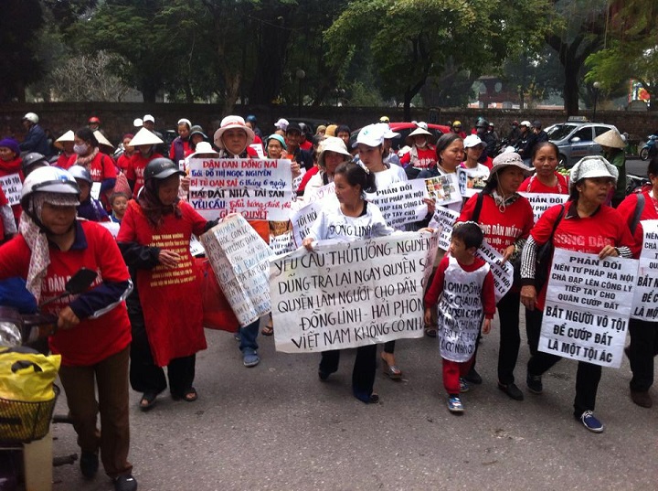 VRNs (07.01.2015) – Trong những ngày đầu năm 2015, bất chấp thời tiết giá lạnh của Miền Bắc, bà con dân oan khắp nơi, già trẻ vẫn ngày ngày xuống đường, cầm biểu ngữ đi qua các con phố, đứng trước cổng các cơ quan công quyền phản đối chính sách bất công của nhà cầm quyền qua việc cưỡng chế đất đai, nhà cửa bắt người bỏ tù. Việc làm của bà con dân oan ít nhiều đã gây được sự chú ý và thức tỉnh của người dân qua đường về tình trạng bất công đang diễn ra trên đất nước này.