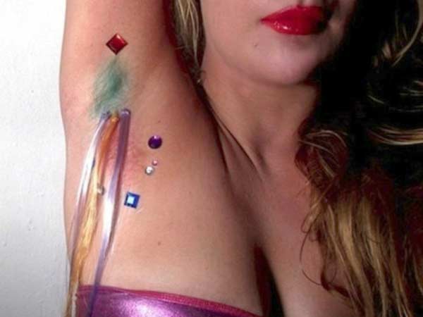 Vừa nhuộm nách vừa gắn thêm đá màu và nối lông - Ảnh: xoJane.com