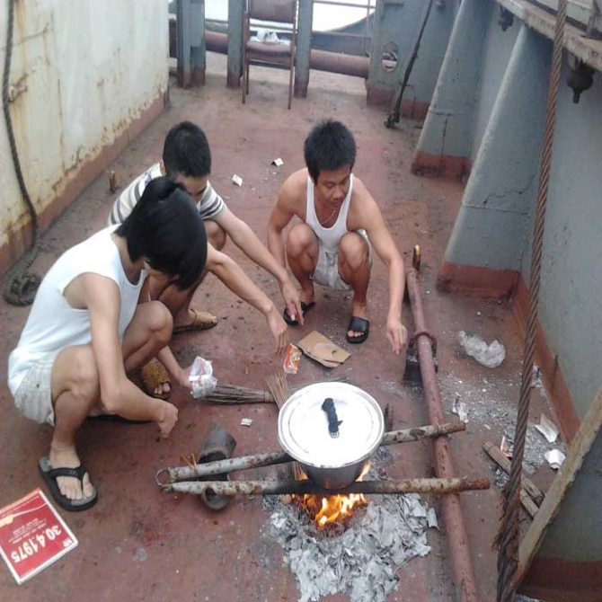 "Những khác biệt về văn hóa là khó khăn nhất đối với anh em. Ngay như việc ăn uống. Đến khi đói quá, thu gom phi dầu đổi được ít mì tôm của Indonesia về cho anh em ăn, nhưng đa số không ăn được, hoặc đói quá không chịu nổi thì ăn một ít vì mùi vị rất khó chịu", đầu bếp của tàu Phúc Hải 05 chia sẻ.