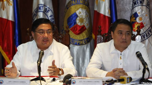 Thứ trưởng Quốc phòng Philippines Pio Lorenzo Batino (phải) nói các diễn tiến 'lấp biển lấy đất' của Trung Quốc tại bãi đá Chữ Thập là 'mối quan ngại rất nghiêm trọng'.