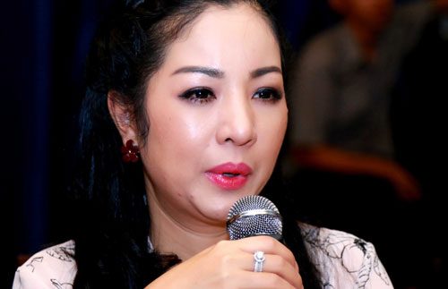 Thúy Nga khóc tại buổi gặp gỡ báo chí tối 22/1 ở TP HCM.