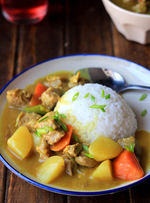 Khi khoai tây mềm, cho cà ri bò ra bát, ăn kèm cơm nóng nhé!