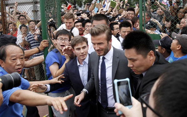 Becks nở nụ cười thân thiện với người hâm mộ Trung Quốc.