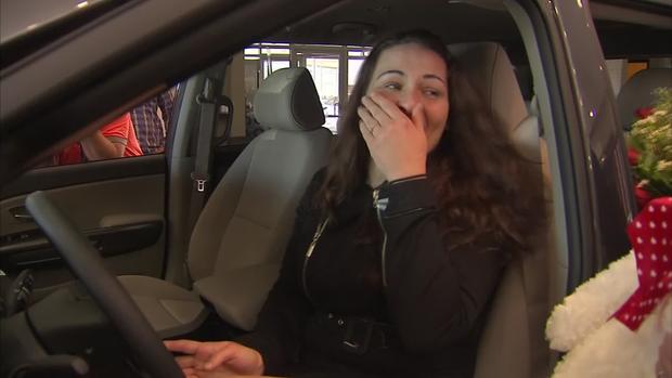 Cô Jessica Leismann ngồi trong chiếc xe mới.