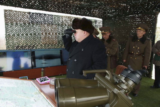 Kim Jong Un đang điều hành tập trận tại Bình Nhưỡng. Ảnh: Reuters