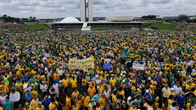 VOA cho hay, cuộc biểu tình xuất phát từ sự tức giận của người dân Brazil đối với bà Rousseff, liên quan đến vụ dàn xếp lại quả tại công ty dầu khí quốc gia Petrobras. Các công tố viên Brazil gọi đây là vụ tham nhũng lớn nhất được phát hiện từ trước đến nay ở nước này, khi các công ty kỹ thuật và xây dựng lớn nhất Brazil bị cáo buộc đã chi ít nhất 800 triệu USD hối lộ để đổi lấy các hợp đồng được thổi phồng giá trị của Petrobras. Một số chính trị gia đối lập tại Brazil cho rằng các sai phạm tại Petrobras đã diễn ra trong thời kỳ bà Rousseff là chủ tịch hội đồng quản trị công ty này. Bà Rousseff sau đó đã được công tố viên trưởng Brazil loại khỏi cuộc điều tra và bác bỏ sự liên quan nhưng vẫn không dẹp được sự bức xúc từ người dân.