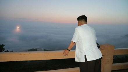 Nhà lãnh đạo CHDCND Triều Tiên theo dõi một vụ phóng tên lửa của nước này hồi cuối năm 2014
