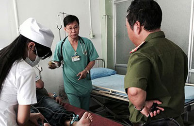 Ông N. bị ngất xỉu tại công an phường Phú Hài và được lực lượng công an đưa đến bệnh viện cấp cứu. (Hình: Pháp Luật Sài Gòn)