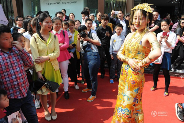 Được biết, số trang sức trên người cô người mẫu có giá trị khoảng 2 triệu nhân dân tệ. Còn tổng giá trị của toàn bộ chiếc xe bao gồm dát vàng, trang sức trang trí trong xe lên đến 500 triệu nhân dân tệ.