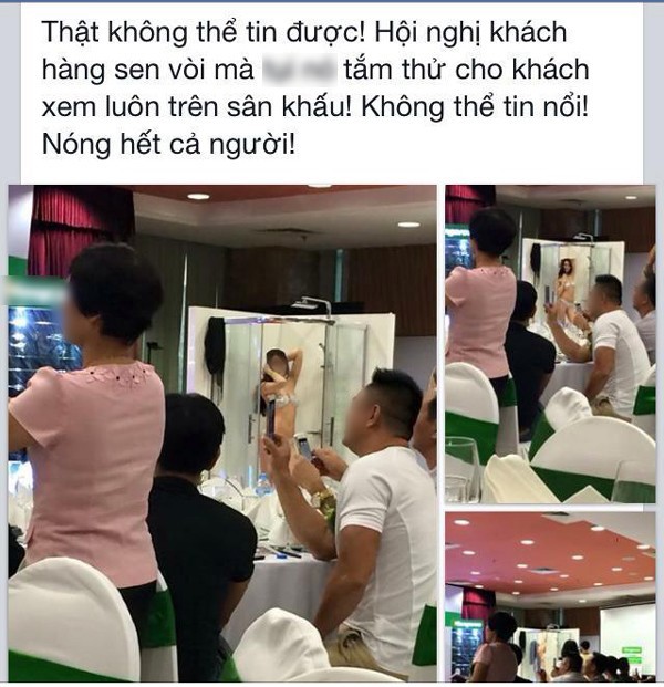 Ngày 6/6, một khách hàng có nick H.T sau khi tham dự lễ ra mắt này đã đăng tải một số hình ảnh lên facebook cá nhân cùng dòng chú thích: "Thật không thể tin được! Hội nghị khách hàng sen vòi mà tắm thử cho khách xem luôn trên sân khấu! Không thể tin nổi! Nóng hết cả người".