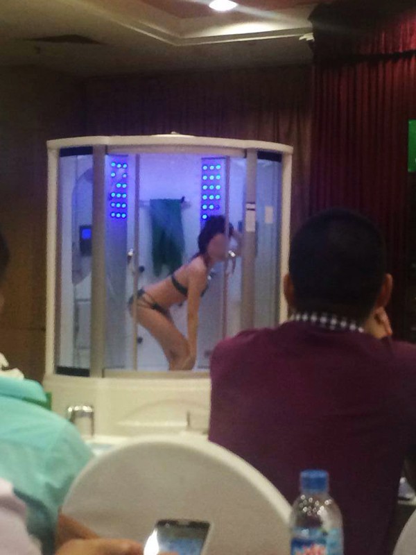 Trong lễ ra mắt sản phẩm của một nhãn hàng gia dụng nổi tiếng, các khách hàng tham dự được một phen "nóng bỏng mắt" khi người mẫu mặc bikini tắm dưới vòi sen trong buồng tắm đặt ngay sân khấu của buổi lễ.