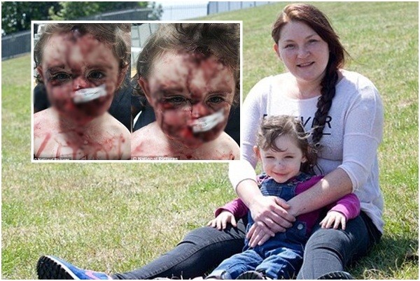Gương mặt đáng thương của cô bé Mayzee-Jo sau khi bị chó dữ tấn công.