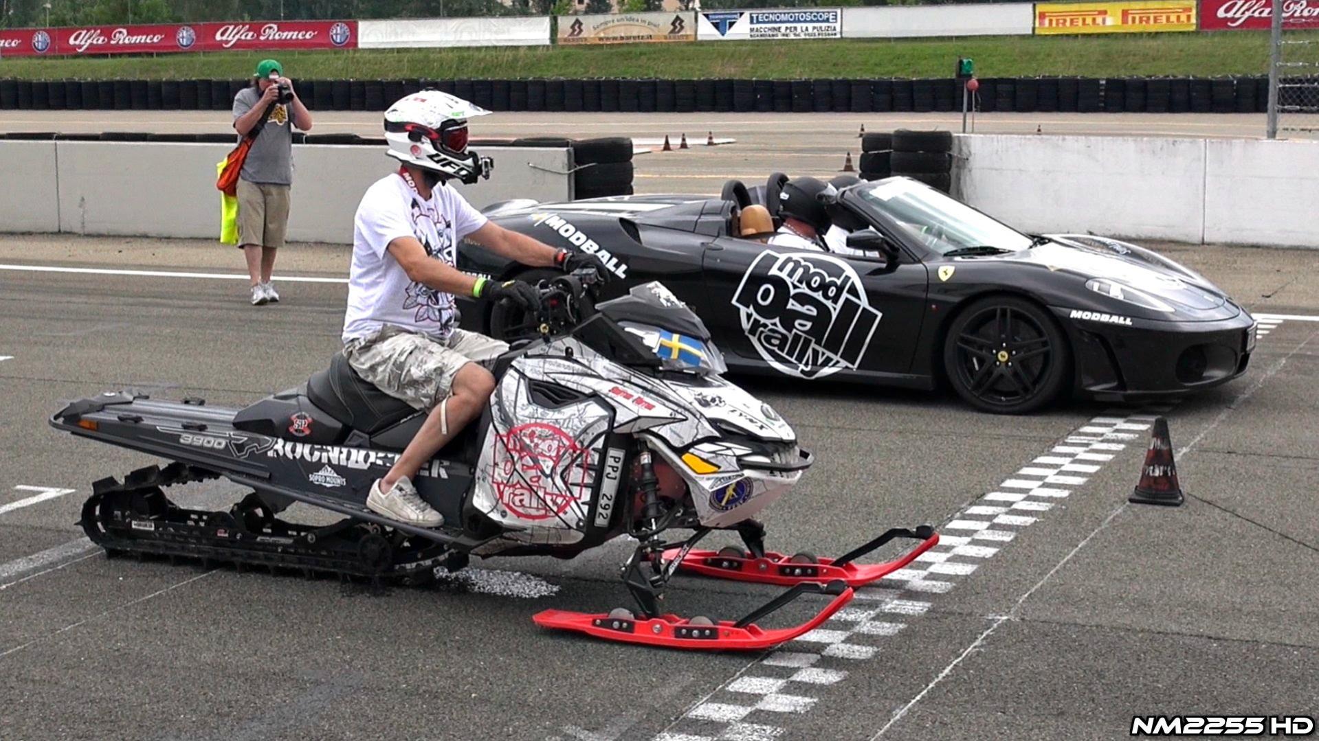 Người ta thường thấy xe đạp đua xe đạp, moto đua moto,... Thế mà trong clip dưới đây bạn sẽ thấy một chiếc xe trượt tuyết chạy bằng động cơ "thách thức" chếc ô tô Ferrari. Hãy xem ai sẽ là người về đích trước nhé!