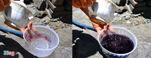 Nước biến màu sau khi pha chè ở làng Linh Quy (Ảnh: Zing)