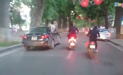 Cứ tưởng có bốn bánh là sang, nhóm chân dài “não ngắn” ngồi trên xe cứ la ó om xòm diễu quanh khắp đường phố Hà Nội. Nhóm này chắc bị “tăng động” do thời tiết Hà Nội mấy hôm nay nóng quá. Hãy xem ý thức không bằng con ruồi của các cô gái này nhé!
