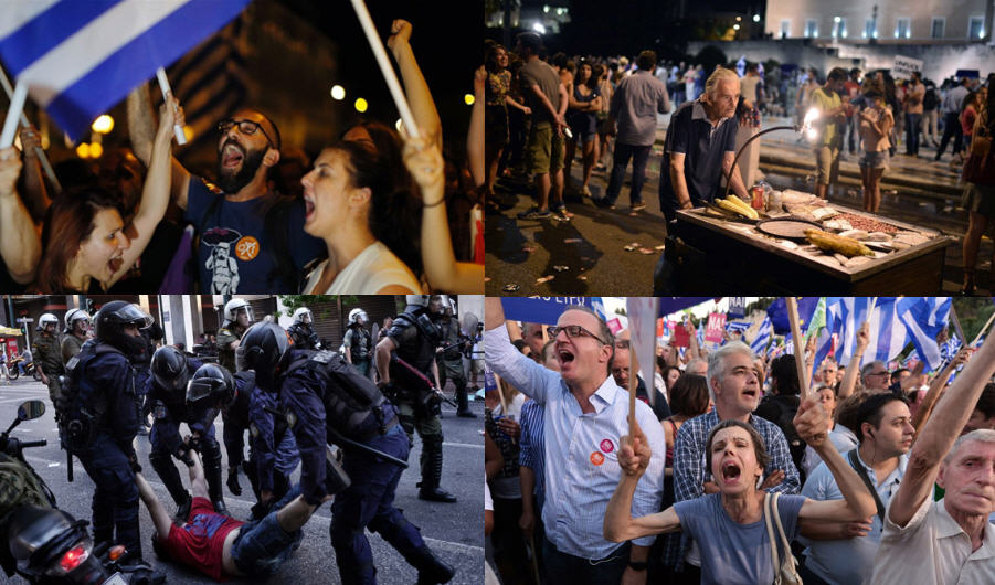 Vietbf.com - Những hình ảnh phơi bày khủng hoảng nước Hy Lạp, mà người dân Hy Lạp đã nói "Không" trong cuộc trưng cầu dân ý về một thỏa thuận cứu trợ kinh tế của quốc tế dành cho nước này, kiên quyết bác bỏ các điều kiện mà chủ nợ đặt ra. Vì nước Hy Lạp có đến 9 triệu phiếu đã được kiểm nói con số "Không" với yêu cầu khắc khổ của các chủ nợ quốc tế. Kết quả đó cũng đẩy Liên minh châu Âu vào một tình thế tiến thoái lưỡng nan: Họ có thể phải đưa ra một thỏa thuận cứu trợ hào phóng hơn trong nỗ lực giữ Hy Lạp ở lại khối Eurozone, hoặc bắt đầu một tiến trình chia rẽ đầy nguy hiểm và tốn kém, và hãy điểm lại tình hình phơi bày khủng hoảng của Hy Lạp sau đây.
