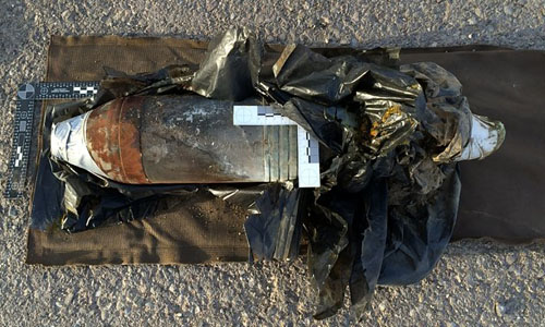 Gregory Robin, cựu kỹ thuật viên quân đội Pháp, người đang làm việc cho Cơ quan nghiên cứu Sahan, đăng ký hoạt động ở Anh, thu hồi quả đạn pháo này vào cuối tháng 6. Phần đuôi của nó bị vỡ, rò rỉ ra một chất lỏng làm xông lên mùi của clo và gây khó chịu cho đường thở và mắt người tiếp xúc.
