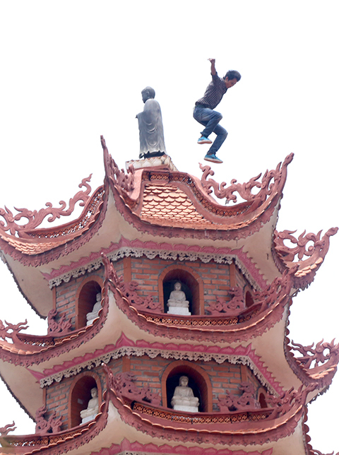 Old  Default Clip hanh niên "ngáo đá" nhảy từ tầng 11 xuống đất đập mái chùa, rơi vào phao, vẫn không sao