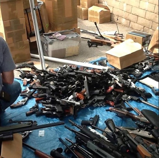 Trong số vũ khí tìm thấy có nhiều loại súng khác nhau, bao gồm súng ngắn và súng trường. Trong đó có nhiều khẩu súng chưa từng được sử dụng và một số khẩu còn bọc trong hộp và còn nguyên giá tiền.