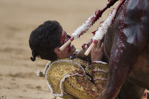Nó dùng sừng cắm thẳng vào ngực đấu sỹ này.