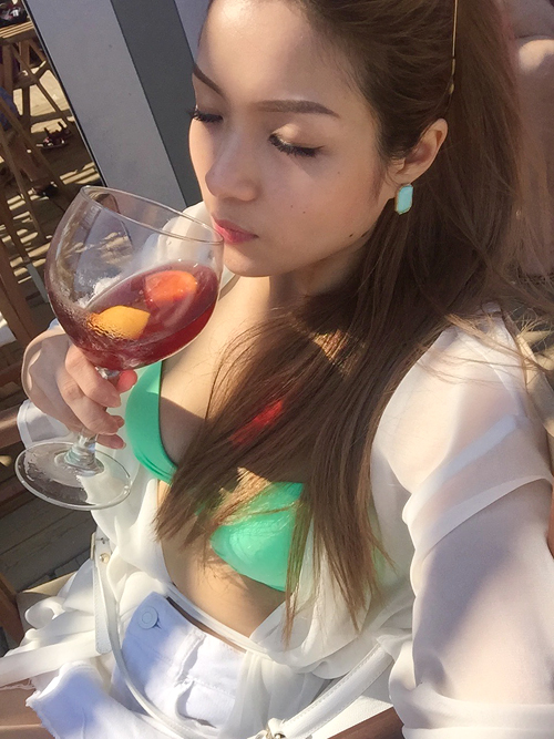 Cô tạm gác lại công việc, lên đường sang Tây Ban Nha du lịch để tinh thần được thư thái. Ca sĩ khoe đường cong quyến rũ trên bãi biển thành phố Barcelona.