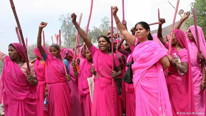 Những phụ nữ trong nhóm "Chiến binh Hồng" đang đấu tranh chống lại nạn hiếp dâm, bạo hành gia đình và chế độ gia trưởng tại Ấn Độ. (Ảnh: DW.com)