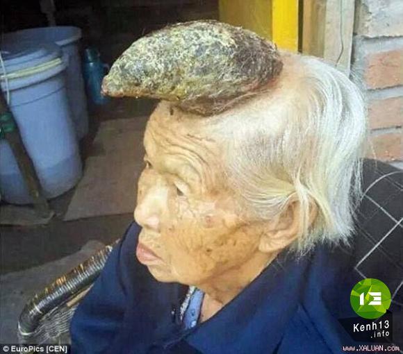 Một cụ bà người Trung Quốc 87 tuổi trên đầu mọc một chiếc sừng thực thụ. Bà cho biết mới đầu nơi mọc chiếc sừng là một nốt ruồi, sau 7 – 8 năm đã phát triển thành một chiếc sừng dài 13cm cong và cứng như sừng con kỳ lân. Trong làng của bà, người ta gọi bà là “bà cụ kỳ lân”.