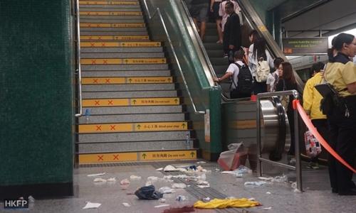 Hiện trường vụ tấn công bằng dao trong ga tàu. Ảnh: HKFP