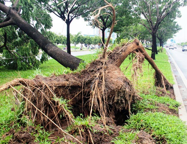 Ghi nhận dọc đại lộ Võ Văn Kiệt đoạn từ An Dương Vương đến Hồ Ngọc Lãm, chỉ chưa đầy 1km nhưng có tới 8 cây xanh bị trốc gốc, nhiều cây bị nghiêng. Đa phần các cây xanh bị ngã vào dải phân cách giữa đường nên không có sự cố đáng tiếc xảy ra.